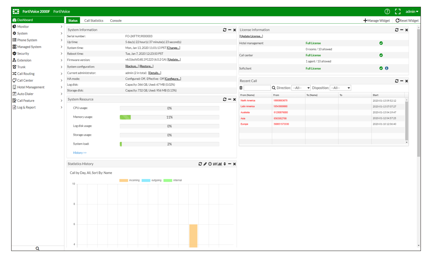 The FortiVoice™ solutions accommodate efficient employee collaboration within a centralized, safe, and secured environment so your organization can provide the best customer service through a variety of our unique and advanced communication features. Powerful, affordable, and simple, FortiVoice phone systems have the strength to make call management easier in offices with up to 50,000 users. With integrated voice, conferencing, and fax, FortiVoice empowers you to manage calls easily across offices, control communication costs, and stay connected globally.