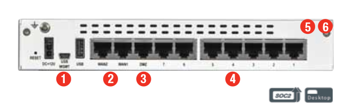 | Multi-Port Interfaces | Multiple network interfaces and optional wireless connectivity enables flexible deployment and improves protection with multiple security zones |